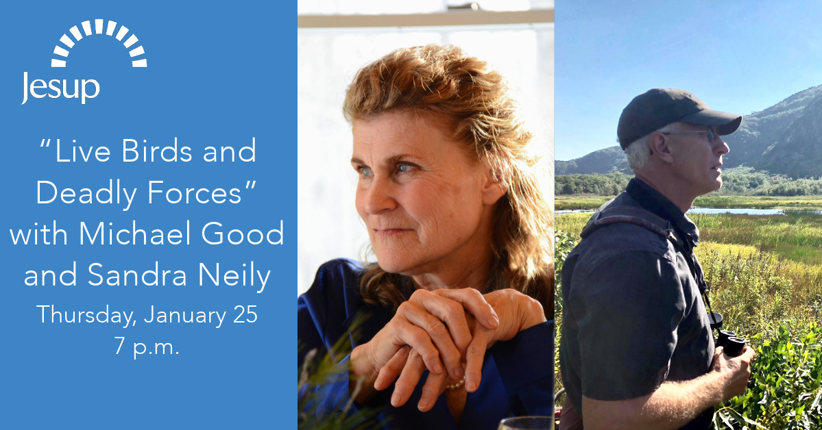 Their presentation, “Live Birds and Deadly Forces,” offers up Good’s short PowerPoint of birds and habitat at risk, a reading from Neily’s last novel along with a drawing for a free copy of it, and plenty of time for comments and questions.