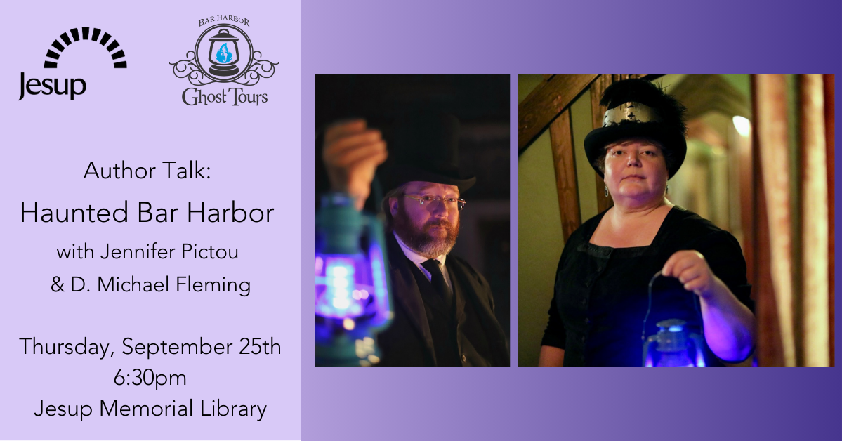 Haunting stories of legendary people! Hear about the historical hauntings of Bar Harbor, Maine and dare to walk the same paths that our ghosts still haunt. Written by local storytellers Jennifer Pictou and D. Michael Fleming, this book covers not only some of the spirited places in town but also experiences that visitors, summer tourists, and tour guides of Bar Harbor Ghost Tours have personally experienced. Authors will read excerpts from their new book and discuss the intricate history behind the stories.