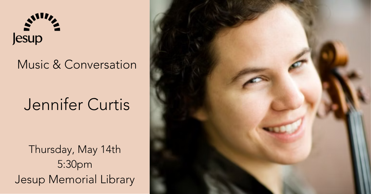 On Thursday, May 14th at 5:30pm, the Jesup’s final ‘Music & Conversation series of the 2025-2026 season will feature Jennifer Curtis. Thanks to an anonymous donor, his program is offered free to the public.