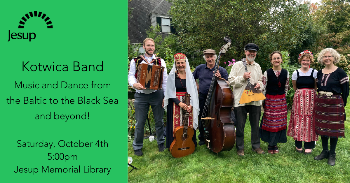 The Kotwica Band performs music and teaches dances from a wide range of traditions from Scandinavia, the Mediterranean, the Balkans, and the Middle East. "Kotwica" (Koht-veetz-uh) means anchor, a cultural symbol of freedom from tyranny. This event is brought to you by the Bar Harbor Music Festival and the Thirsty Whale.