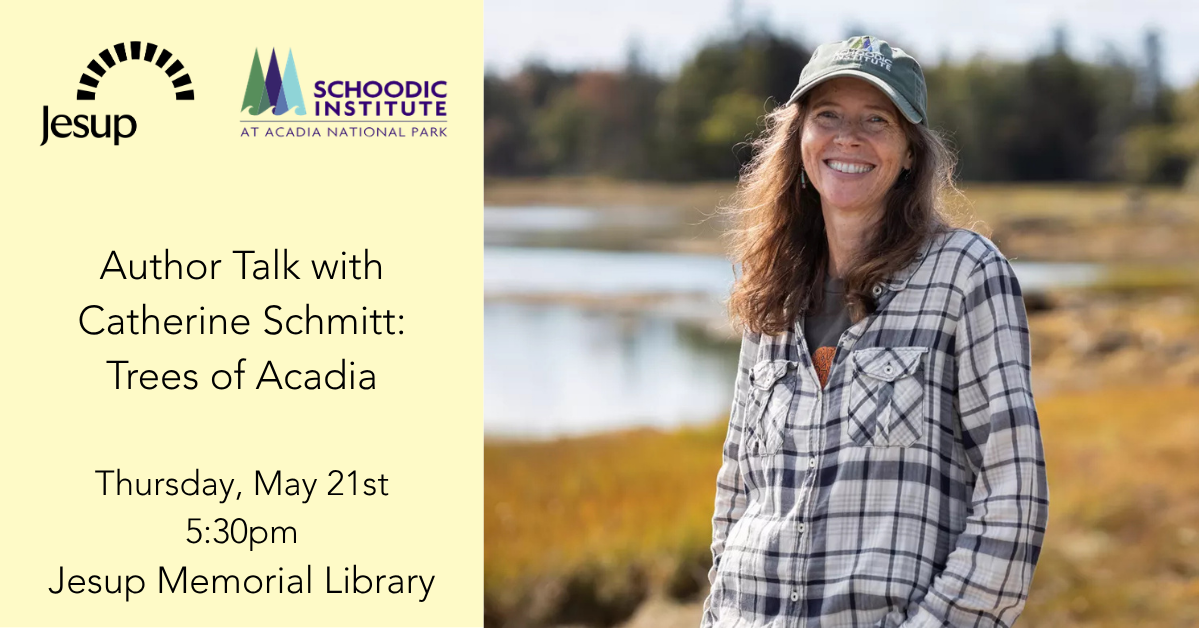On Thursday, May 21st at 5:30pm, author Catherine Schmitt will appear at the Jesup Memorial Library for a book launch and reading from Trees of Acadia. Copies of the book will be available for sale, courtesy of Sherman’s Books.